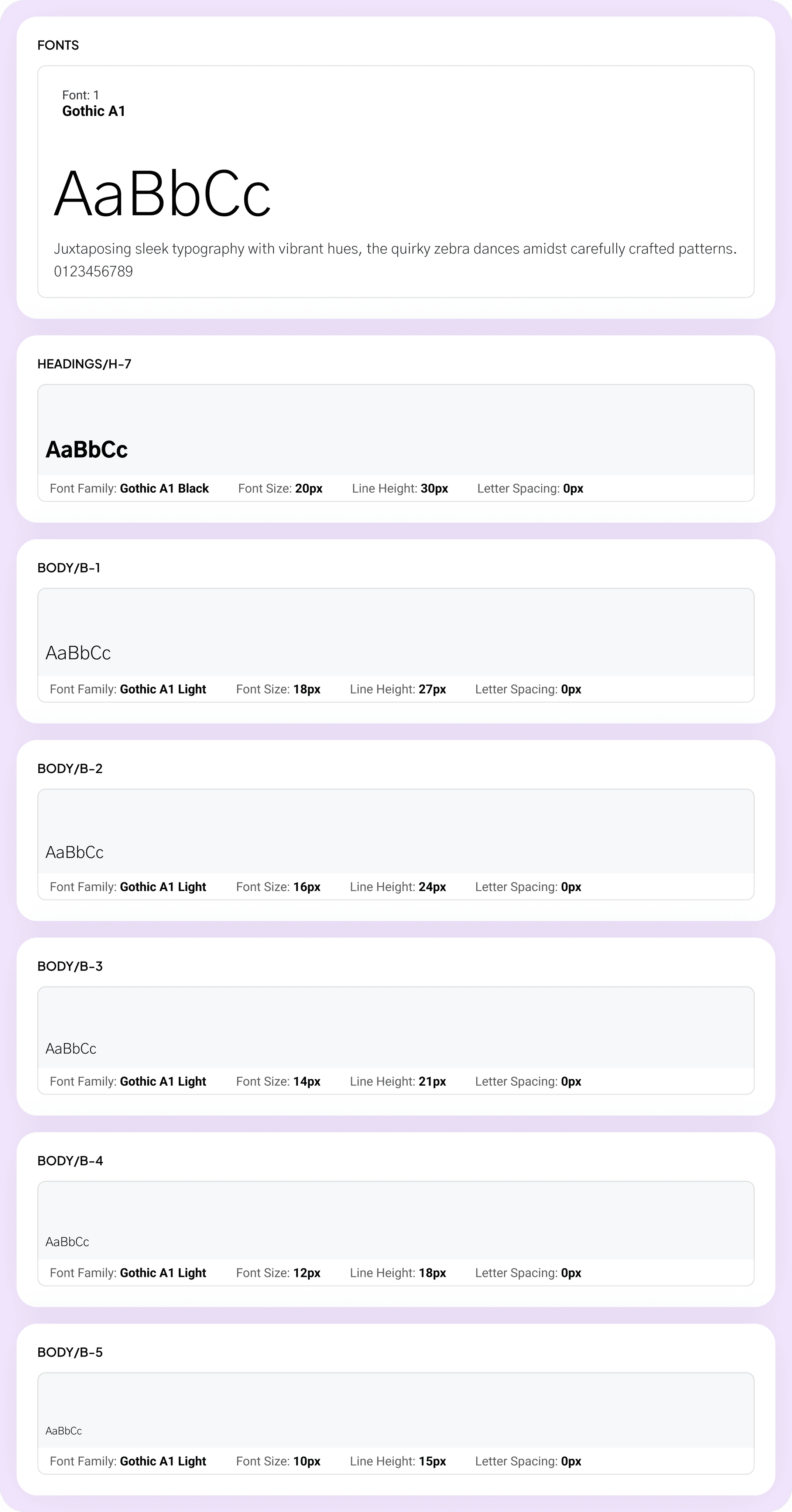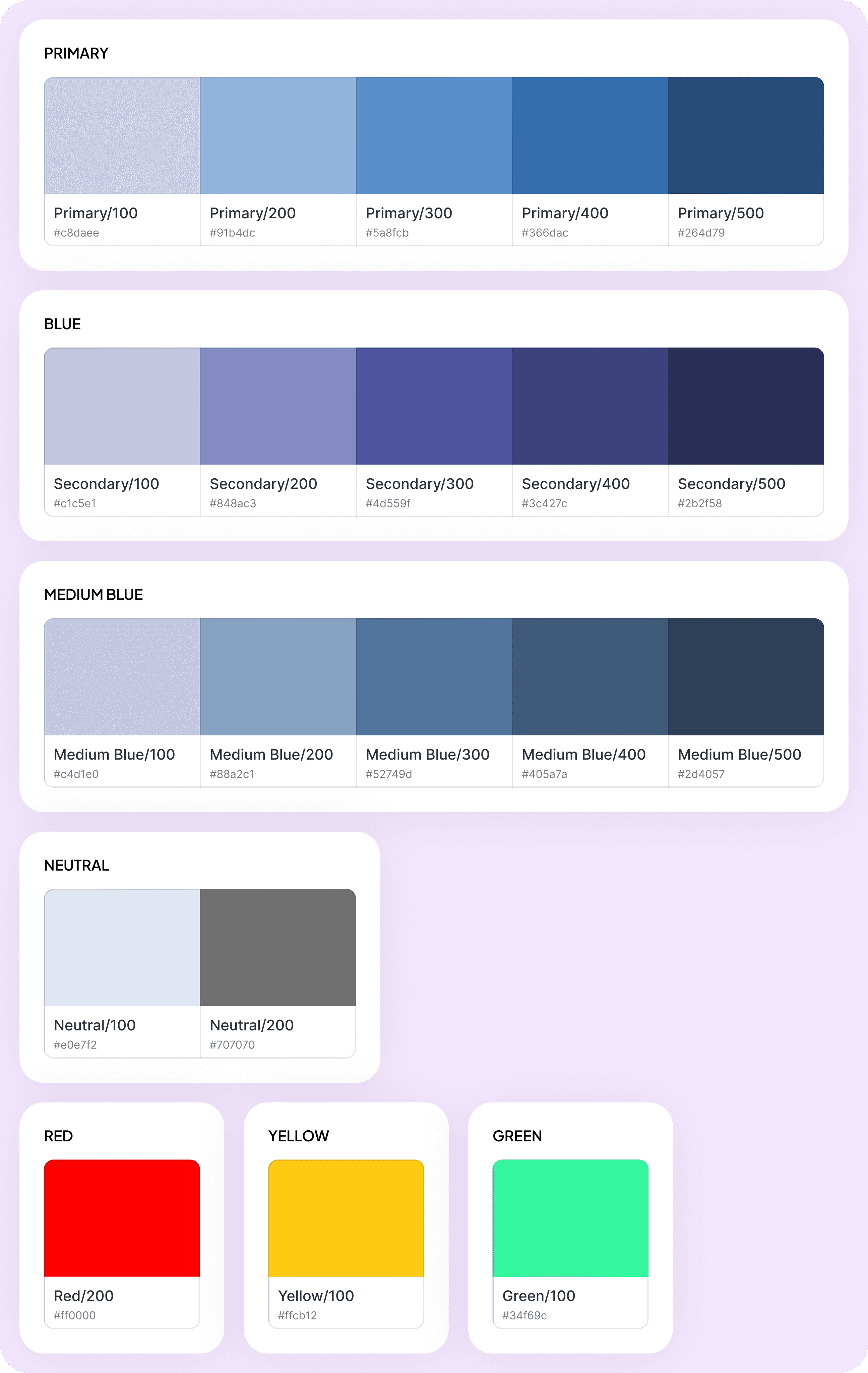 The client’s existing primary color and font style provided a solid foundation, accelerating the design process. Building on this, I expanded the palette with complementary shades and introduced high-contrast accent colors to highlight alerts and key actions. For typography, I carefully defined font sizes and line heights to establish a clear visual hierarchy, ensuring content was easy to scan and interact with. These decisions enhanced both aesthetics and functionality, creating a cohesive and accessible design.