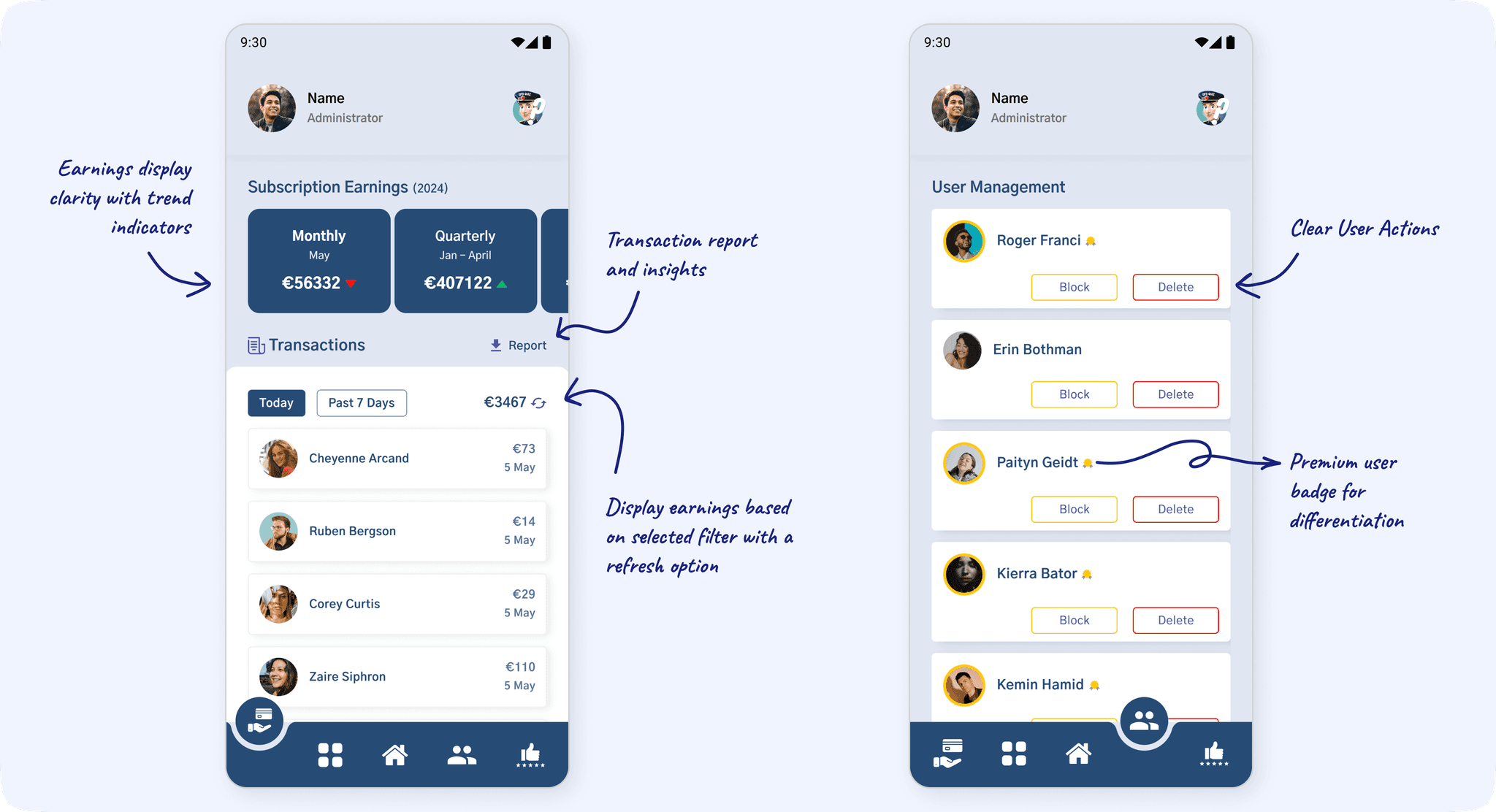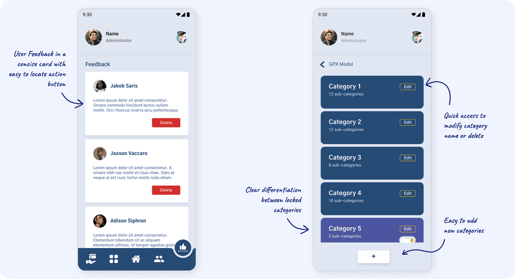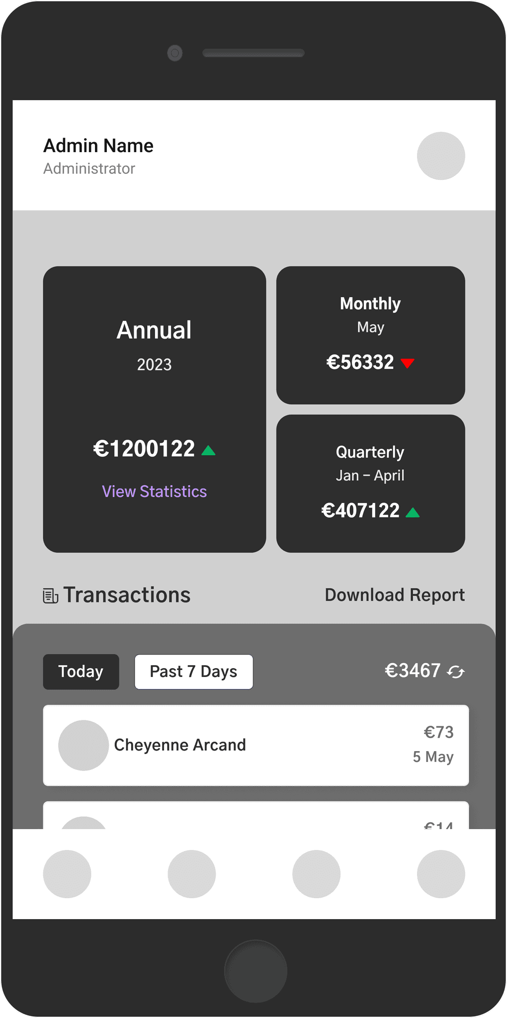 Given the app's data-intensive nature, I focused on establishing a clear and logical hierarchy, ensuring the admin could easily navigate between screens and sub-screens without feeling overwhelmed. The goal was to create an experience where complex data could be managed effortlessly, with each interaction feeling natural and streamlined.