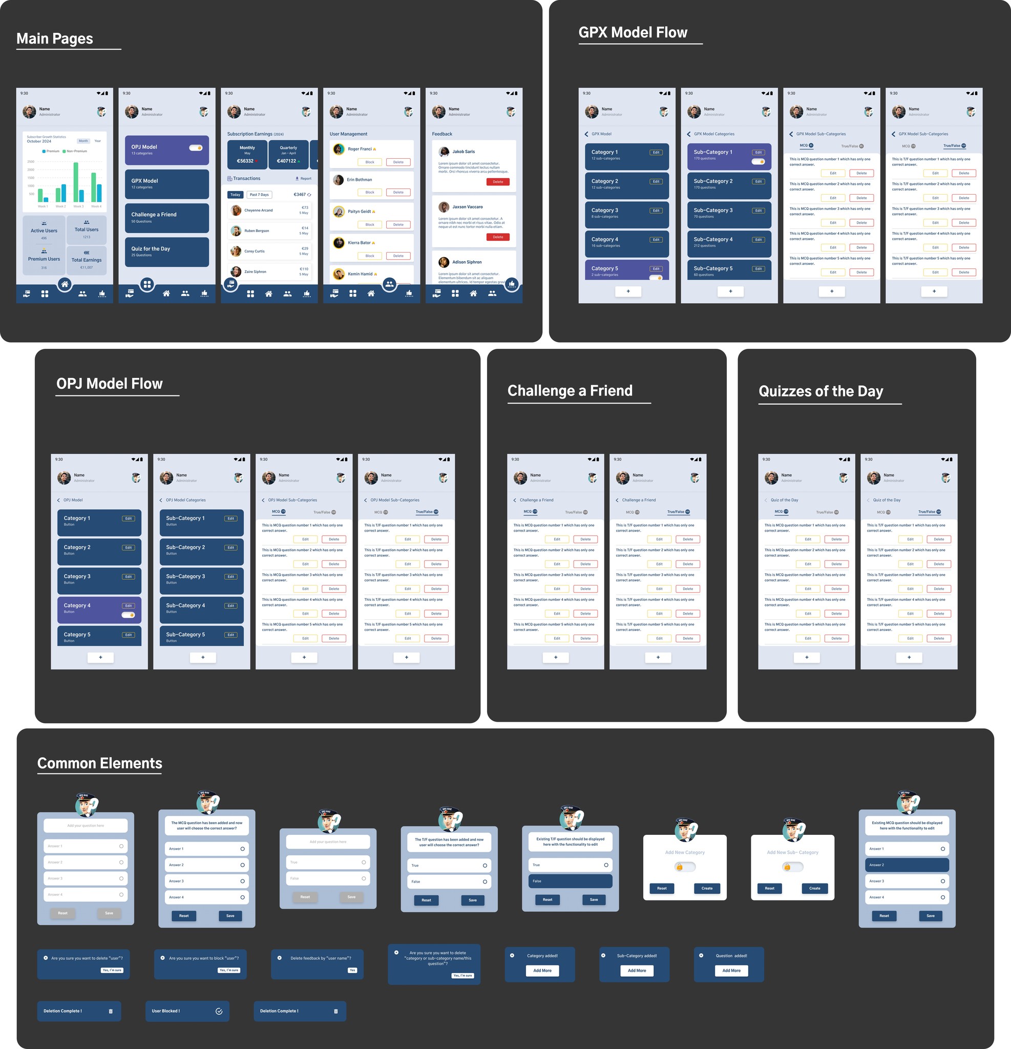 During multiple client interviews, we clarified his vision and discovered that scalability wasn’t a concern. His primary goal was to efficiently manage the GPX Quiz user panel, which featured multiple question models across various categories. He also sought suggestions for integrating user feedback, especially from paid users, to address updates like syllabus revisions or question additions.